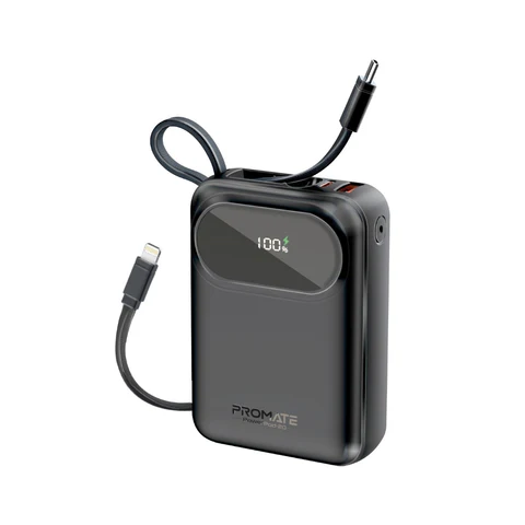 PowerPod-20 is a 20,000mAh power bank that combines high capacity with portability. Its sleek design and built-in cables make it a convenient solution for charging your devices on the go.